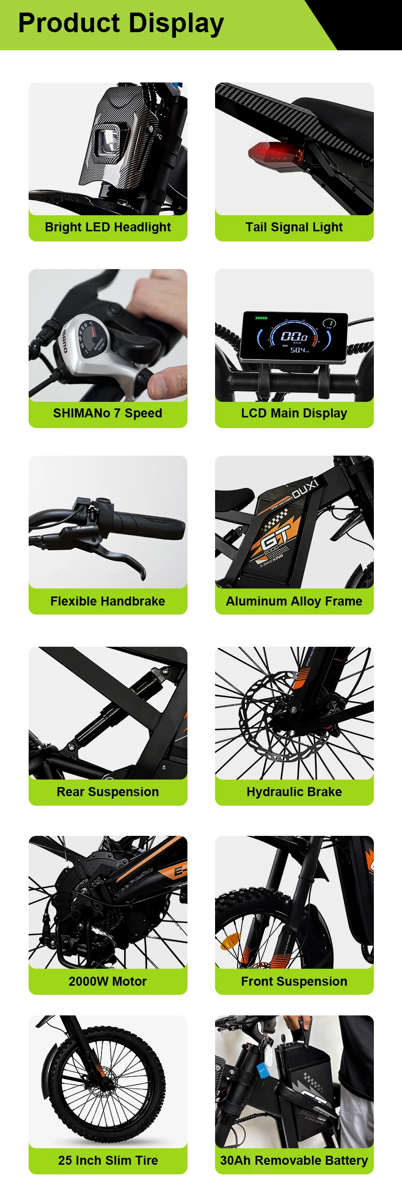 EU OUXI Offroad Tire Electric Bike Adults 60V Full Suspension Hybrid Mountain E Bike Customizable Lithium Battery Bike GT2000